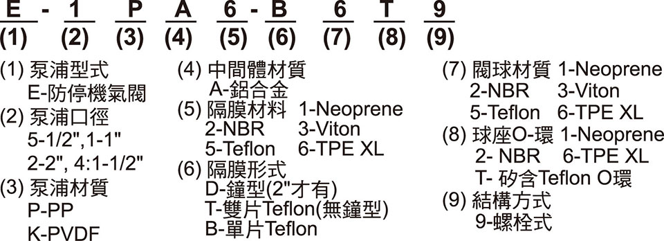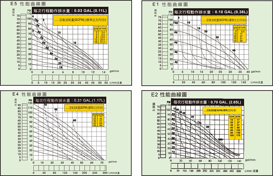 - 采用Teflon膜片時,流量會減少20%,自吸高度降低為10尺(干)或20尺(濕)。