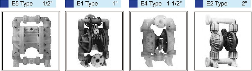 - 空壓驅(qū)動隔膜式設(shè)計,可以使用含有固體微粒,高黏度之液體。
