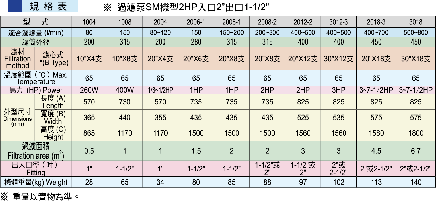 - 內(nèi)含成型濾心不含濾袋、不附(底閥、視流器、出入口法蘭組)。