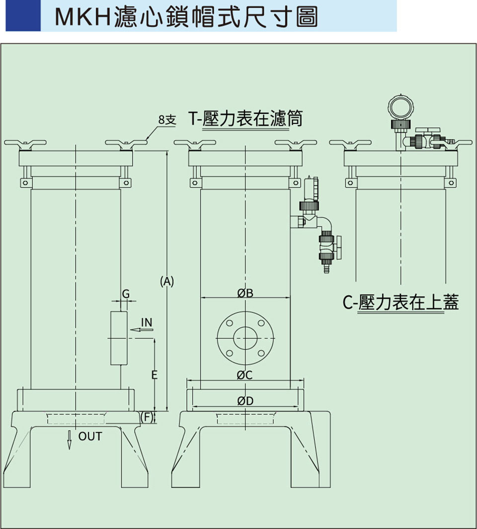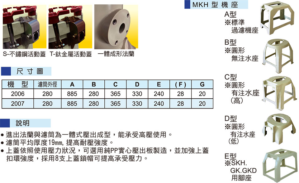 - 進出法蘭與濾筒為一體式壓出成形,能承受高壓使用。