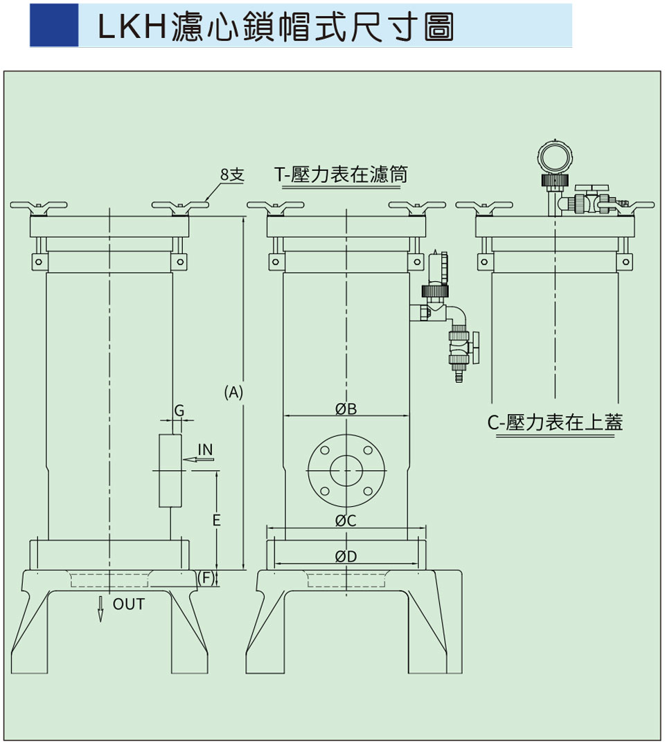 - 進(jìn)出法蘭與濾筒為一體式壓出成型,能承受超高壓使用,測(cè)試耐壓6KG適用4KG以內(nèi)。