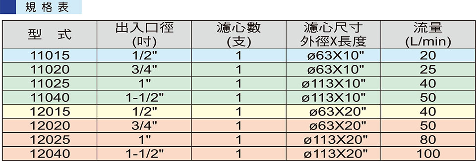 - 濾心密度由1μ~75μ各種規(guī)格依過濾之要求而定。